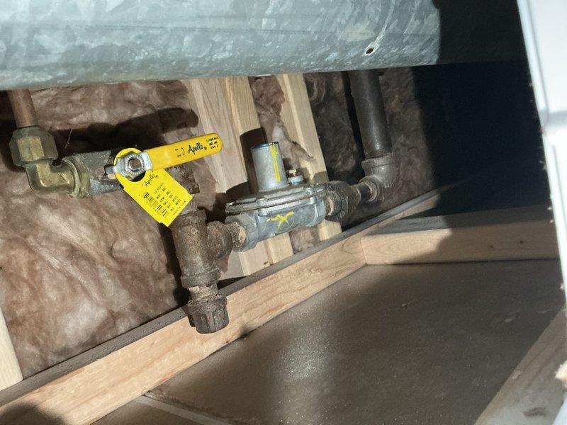 Installed gas pressure regulator as part of warranty service. Noted that customer still cannot isolate gas supply to their unit only. Recommended HVAC technician assessment as the new regulator is larger than the previous model, which may create installation complications.