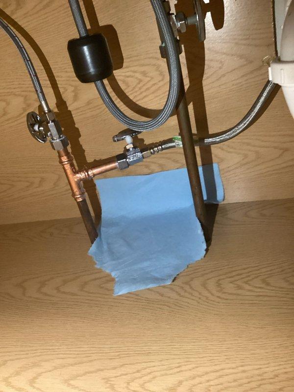 Responded to service recall for kitchen sink leak. Determined dishwasher supply connection was the source of leakage. Replaced faulty valve to resolve the issue. System now operating correctly with no further leaks observed.