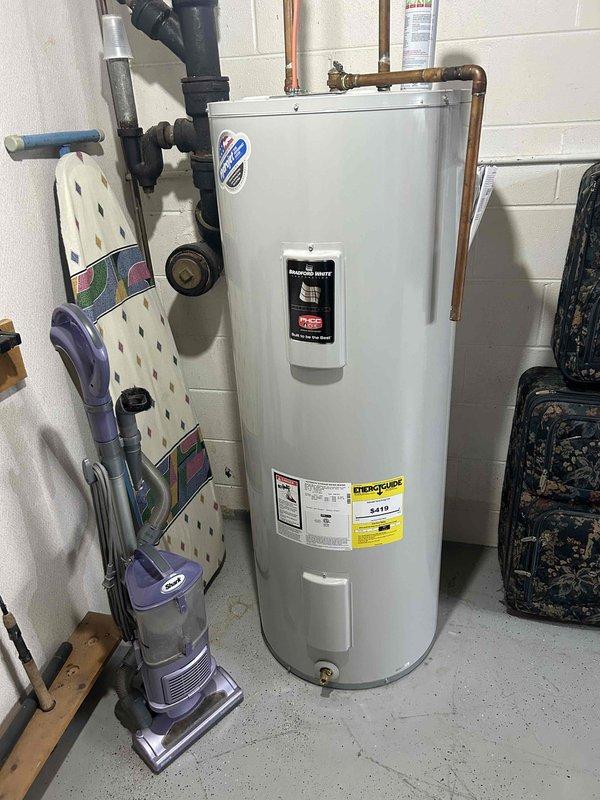 Replaced non-functioning 50-gallon electric water heater from 2007 with new Bradford White 50-gallon electric unit. Customer was not available until 2:30 PM; coordinated arrival time with Pat prior to service.