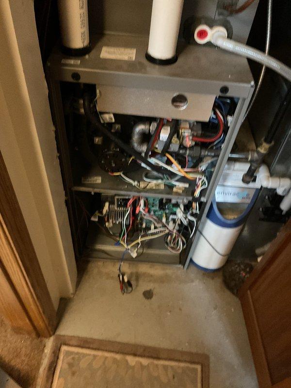 Completed comprehensive furnace maintenance tune-up on a 5-6 year old residential HVAC system for a new homeowner who recently moved into the property. Performed standard seasonal maintenance procedures including inspection of blower motor, ductwork connections, and electrical components. Replaced aging humidifier unit with new equipment and installed new drain hose to ensure proper moisture management and system efficiency.