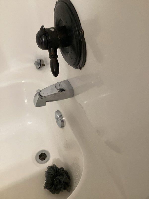 Responded to water leak causing damage to kitchen ceiling from upstairs bathroom. Upon investigation, identified faulty tub spout as source of leak. Removed defective chrome tub spout and installed new replacement unit, ensuring proper seal to prevent future water intrusion and ceiling damage.