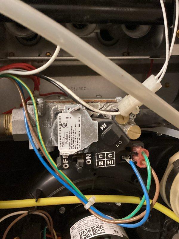 Responded to no heat call for natural gas system under 10 years old. Diagnostic testing with multimeter identified induction motor failure. System was blowing cold air and not firing. Replaced faulty component and restored proper heating function.
