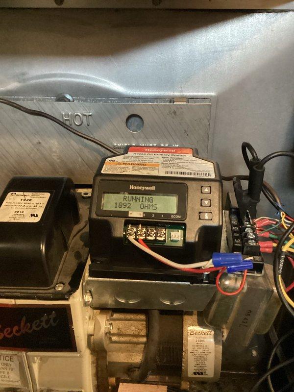 Responded to no heat complaint involving an oil furnace in lockout condition. Diagnosed electrical issue in the Beckett assembly control module, specifically identifying a damaged wire in the ignition system. Repaired faulty wiring, tested system operation, and verified normal heating function was restored.